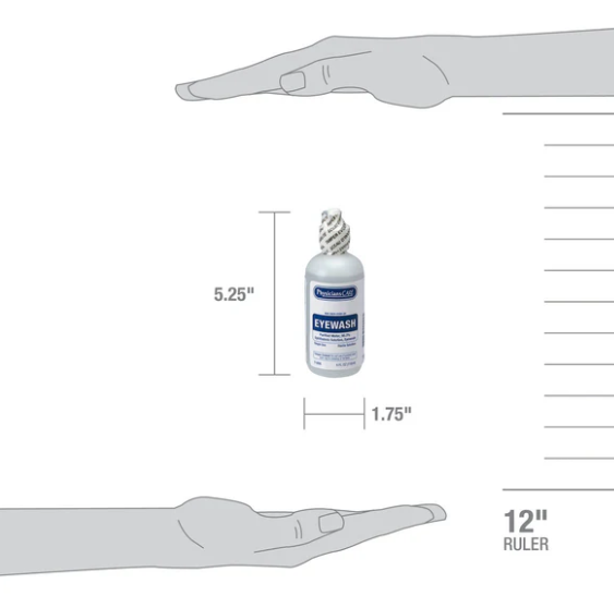 - Bottle of sterile isotonic buffered solution for washing and flushing and irrigating the eyes and skin.